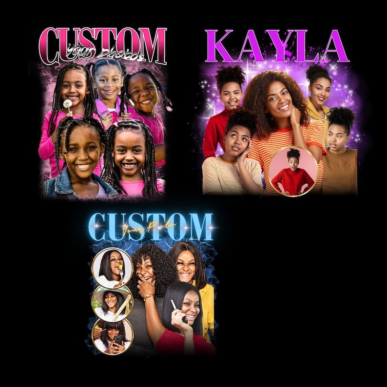 Design a unique t-shirt with your loved ones face all over it that will expresses the love you have for that special someone. Just add your desired Images and text you want the shirt to say, we will clean image if needed. When creating this shirt please add up to 10 images with a full head and body shot in order for your shirt to come out as advertised, We will pick up to 5 images and email you a draft for approval before any final print is to be made.